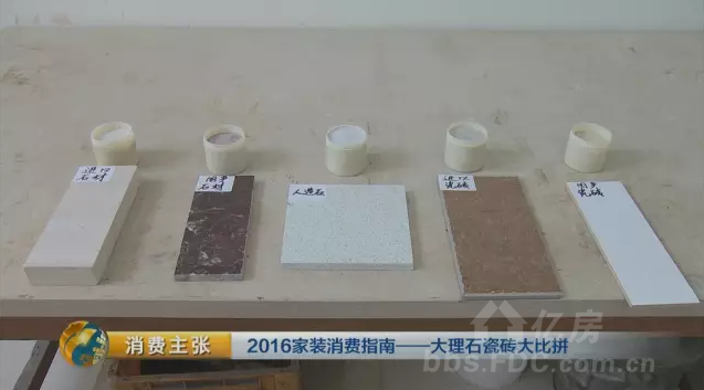 我們分別準(zhǔn)備了國產(chǎn)和進(jìn)口大理石,國產(chǎn)瓷磚和進(jìn)口瓷磚的5份樣品,分別用來測(cè)試消費(fèi)者比較關(guān)注的輻射性、耐磨程度和吸水性。